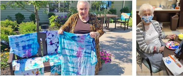 There’s plenty of activities to choose from right at home as well. Pictured above, Christine Pruetz shows off the results of a community-wide tie-dye craft and Patricia Bartlett participates in a painting night with Splash on Canvas, sponsored by Mike Shady and the Lelonek Agency, Inc.