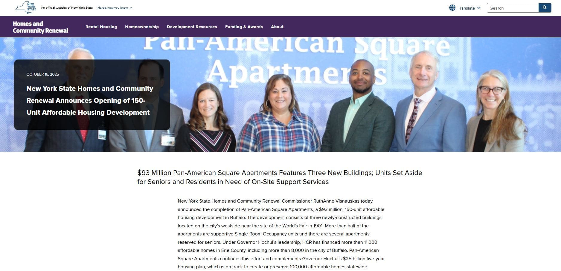 New York State Homes and Community Renewal (HCR) Announces Opening of 150-Unit Affordable Housing Development (NYS HCR: October 16, 2025)