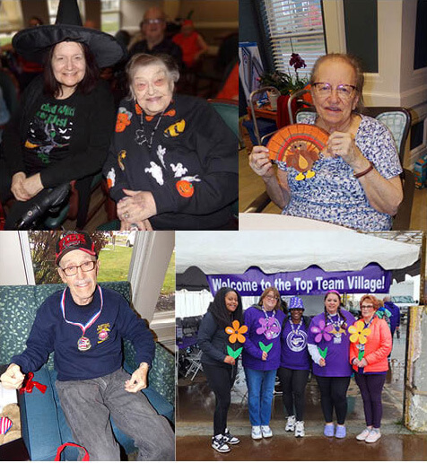 Glenwell celebrated Halloween with the music of Tom Bender, donuts and cider, and festive attire! Pictured top left are Linda Markiewicz and Eleanore Stelmaszyk. Next up, residents began preparing for Thanksgiving with turkey-themed crafts. Pictured top right is Virginia Winter.